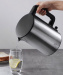 Серебристый корпус гаджета изготовлен из нержавеющей стали марки AISI 304, что дает чайнику дополнительную прочность. Внутренняя колба выполнена по бесшовной технологии, что гарантирует безопасность и простоту эксплуатации. Прорезиненная ручка не нагревается, на ней располагается кнопка открытия крышки. Внутри чайника находится мерная колба, так что всегда можно контролировать уровень воды, не наливая лишнее.